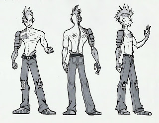 This is a character design for a friend’s character, Nick. He’s a human with cyborg parts in a world of other cyrborg-y humans. He loves to pick fights with others to better himself, at least that’s the impression I got from him. He also doesn’t mind his cyborg parts, unlike his comrades, who like to get life-like synthetic skin to cover up their body parts if they can afford it.